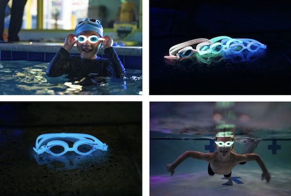 De día estas gafas de natación, son unas gafas de natación para niños con los requerimientos que unas gafas de calidad como Finis deben tener, una máscara suave de silicona que proporciona un ajuste hermético sin apretar, o clips en ambos lados que las hacen fácilmente ajustables. Estas gafas diseñadas para niños son resistentes a los impactos, tienen un tratamiento antivaho e incluso brindan protección contra los rayos UV a la luz. Pero de noche viene lo divertido. Las gafas FlowGlow, brillan en la oscuridad cuando los niños se bañan, incluso debajo del agua.