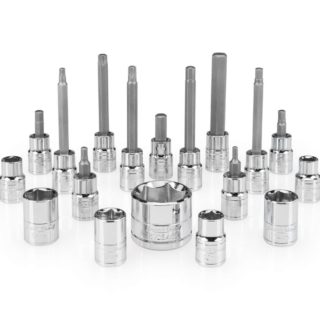 Un juego de 18 puntas hexagonales y Torx® compatibles con el taller, especialmente seleccionadas para piezas y componentes de bicicletas. Las brocas y las llaves de vaso con accionamiento de 3/8″ están fabricadas en robusto acero al cromo vanadio, por lo que son muy duraderas.