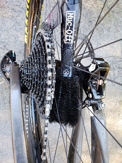 Muc-Off resuelve este problema al incluir el Pincel de garras (“The Claw Brush”) en mi kit. El resultado, sin exagerar, es bastante impresionante. Está diseñado para limpiar cadenas, ruedas dentadas y desviadores. Las cerdas rígidas de nylon son lo suficientemente resistentes como para limpiar el lodo y la grasa incrustada sin romperse.