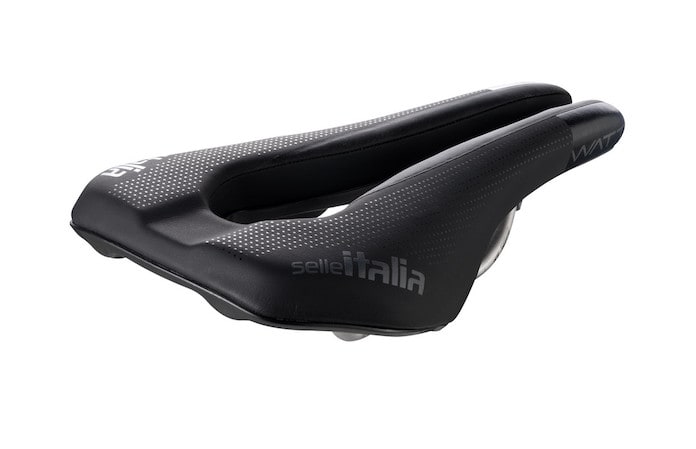 Montado de serie en la Canyon Sepeedmax, es uno de los sillines más vistos, como las Canyon, en triatlón media y larga distancia. Colaboró en su diseño Patrick Lange, y por sus dimensiones es uno de los sillines cortos, y de uso para hombre y mujer. Disponible en dos versiones, kit carbonio, que aligera peso (195 gr) y el bolsillo (259,90 €), y la versión Gel, que es la que estamos viendo. La superficie es del material que habitualmente utiliza Selle italia , Fibra Tex, con unos insertos antideslizantes. que ayudan a que no te muevas tanto en el sillín